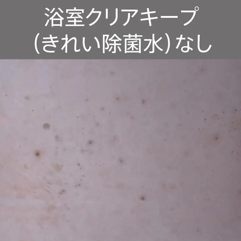 浴室クリアキープ(きれい除菌水)のきれい効果比較試験(壁上部 清掃なし約3カ月後比較)